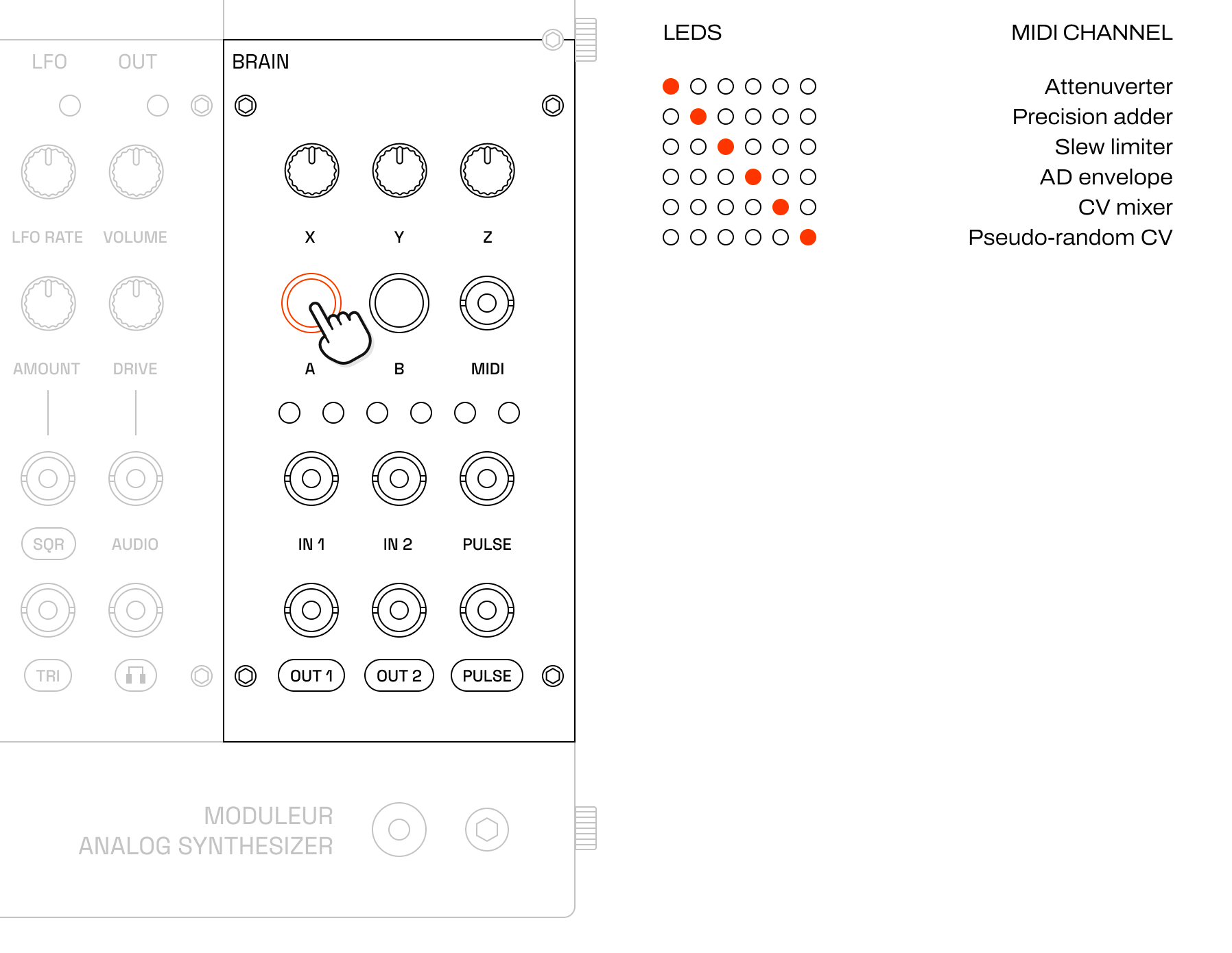 | Pot Z | Main output level (0–100%) |